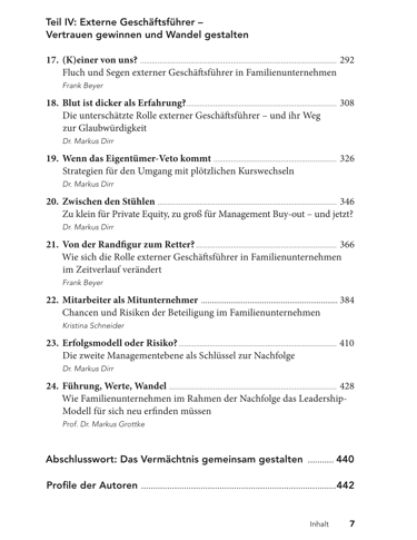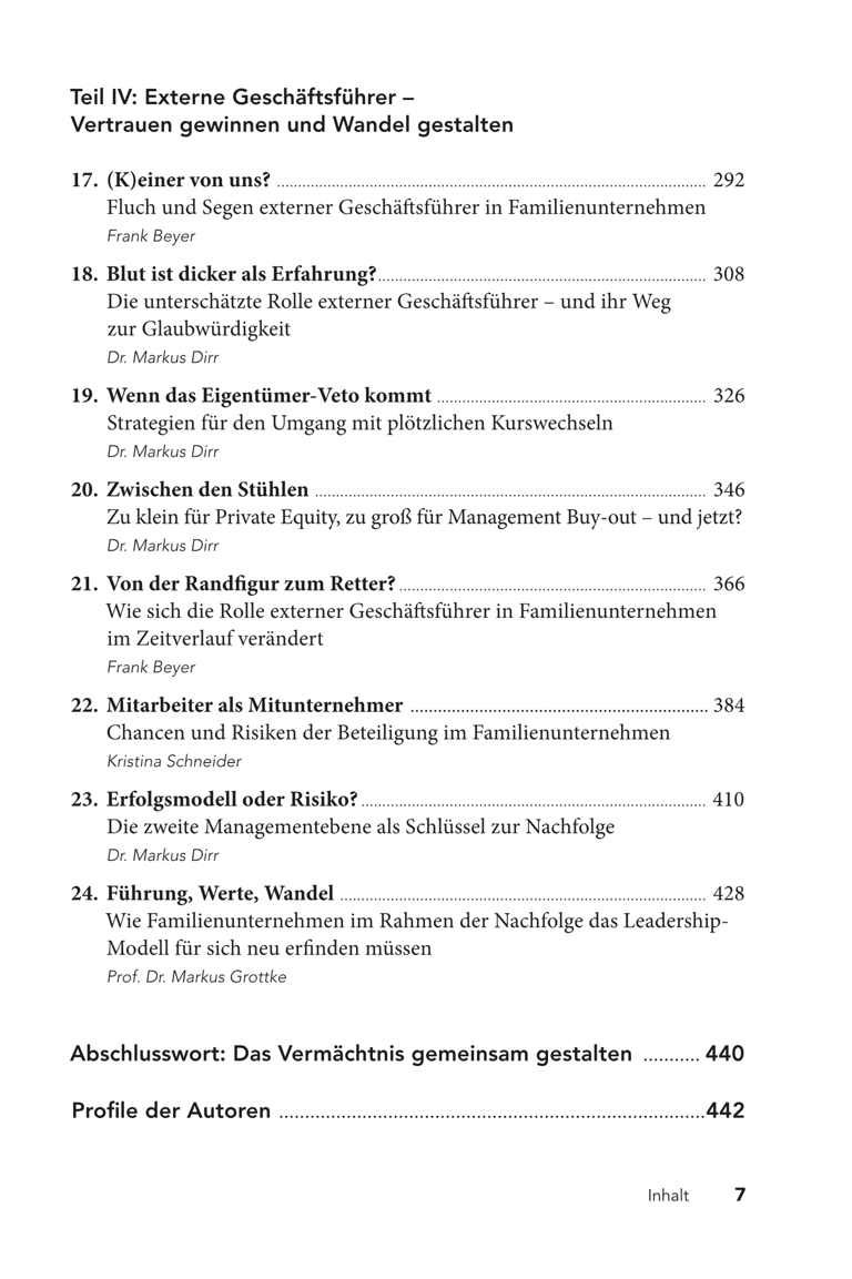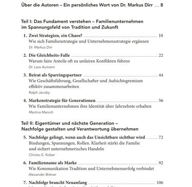 Jeder Autor bringt seine eigene Geschichte mit. Dr. Lara Aumann entschlüsselt als Psychologin die oft unsichtbaren familiären Dynamiken, die erfolgreiche Nachfolge verhindern können. Frank Beyer weiß als Executive Search-Experte, wie entscheidend der „kulturelle Fit“ zwischen externem Manager und Familienkultur ist. Alexander Bittner versteht als Kommunikationsstratege, dass der Familienname allein noch kein Familienunternehmen macht – entscheidend ist, wer ihn glaubwürdig nach außen trägt. Philipp Degen bringt als Gründer von unternehmer-radio.de tiefe Einblicke in Verkaufsprozesse mit. Prof. Dr. Markus Grottke verbindet die wissenschaftliche Perspektive auf Digitalisierung mit praktischer Erfahrung. Stefan Eishold zeigt als CEO von ARCUS Capital, wie Unternehmerkapital nachhaltige Nachfolgelösungen ermöglicht. Ralph Jacoby bringt als Beirat 20 Jahre Erfahrung mit Familienunternehmen zwischen 20 und 400 Millionen Euro Umsatz mit. Michael Klumpp kennt als M&A-Experte nicht nur die technischen Aspekte von Unternehmensverkäufen, sondern auch die mentalen Herausforderungen dabei. Christa Kober weiß als Wirtschaftsmediatorin, dass in Nachfolgeprozessen das Unsichtbare sichtbar werden muss – Bindungen, Loyalitäten, Erwartungen. Martina Manich erlebt als Agenturinhaberin den Generationenwechsel im eigenen Unternehmen. Dr. Bernd Müssig zeigt als Organisationsentwickler, warum Nachfolge kein Übergaberitual ist, sondern ein strategischer Neuanfang. Kurt Schauer bringt als Buy-&-Build-Stratege über 30 Jahre Praxiserfahrung mit familiengeführten Betrieben mit. Kristina Schneider versteht als Rechtsanwältin sowohl die Bedürfnisse von Fremdgeschäftsführern als auch die Interessen der Eigentümerfamilien und schafft Win-Win-Situationen.